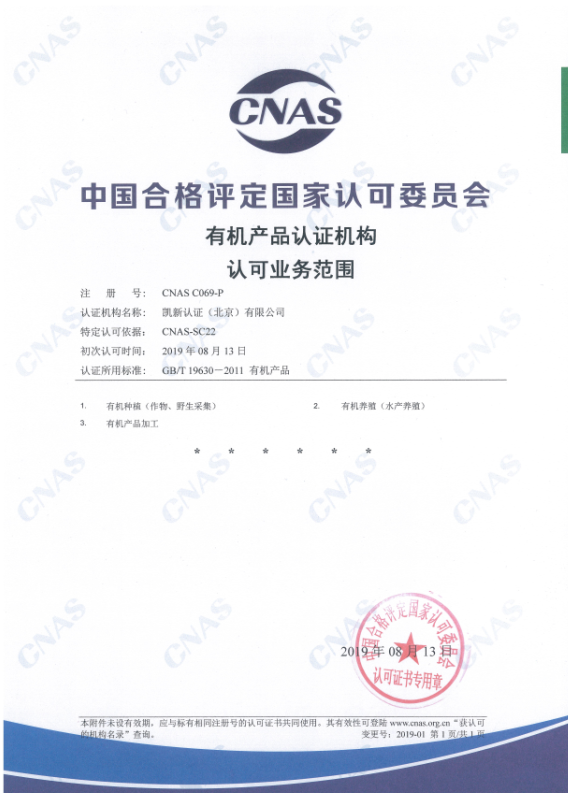 喜報! KCB有機和良好農業規范認證(GAP)領域獲得CNAS認可