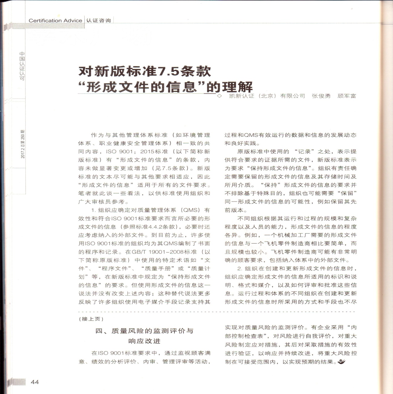 喜賀我公司顧軍富老師文章再獲《中國(guó)認(rèn)證認(rèn)可》雜志刊載292017-03