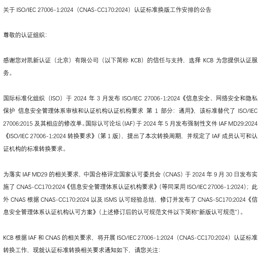 實(shí)施公告關(guān)于新版《質(zhì)量管理體系認(rèn)證規(guī)則》 實(shí)施的公告